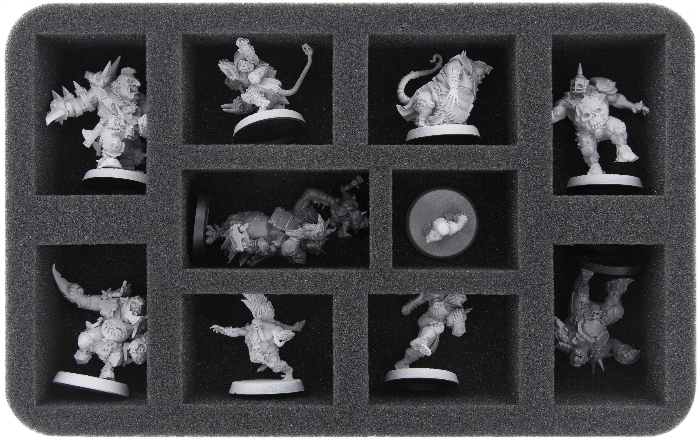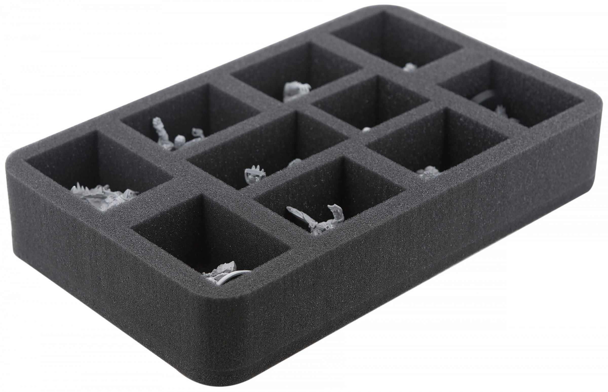 This foam tray is a perfect solution for Blood Bowl. In the 10 slots of the Half-Size mat you can protect and transport your Blood Bowl figures without worry.
