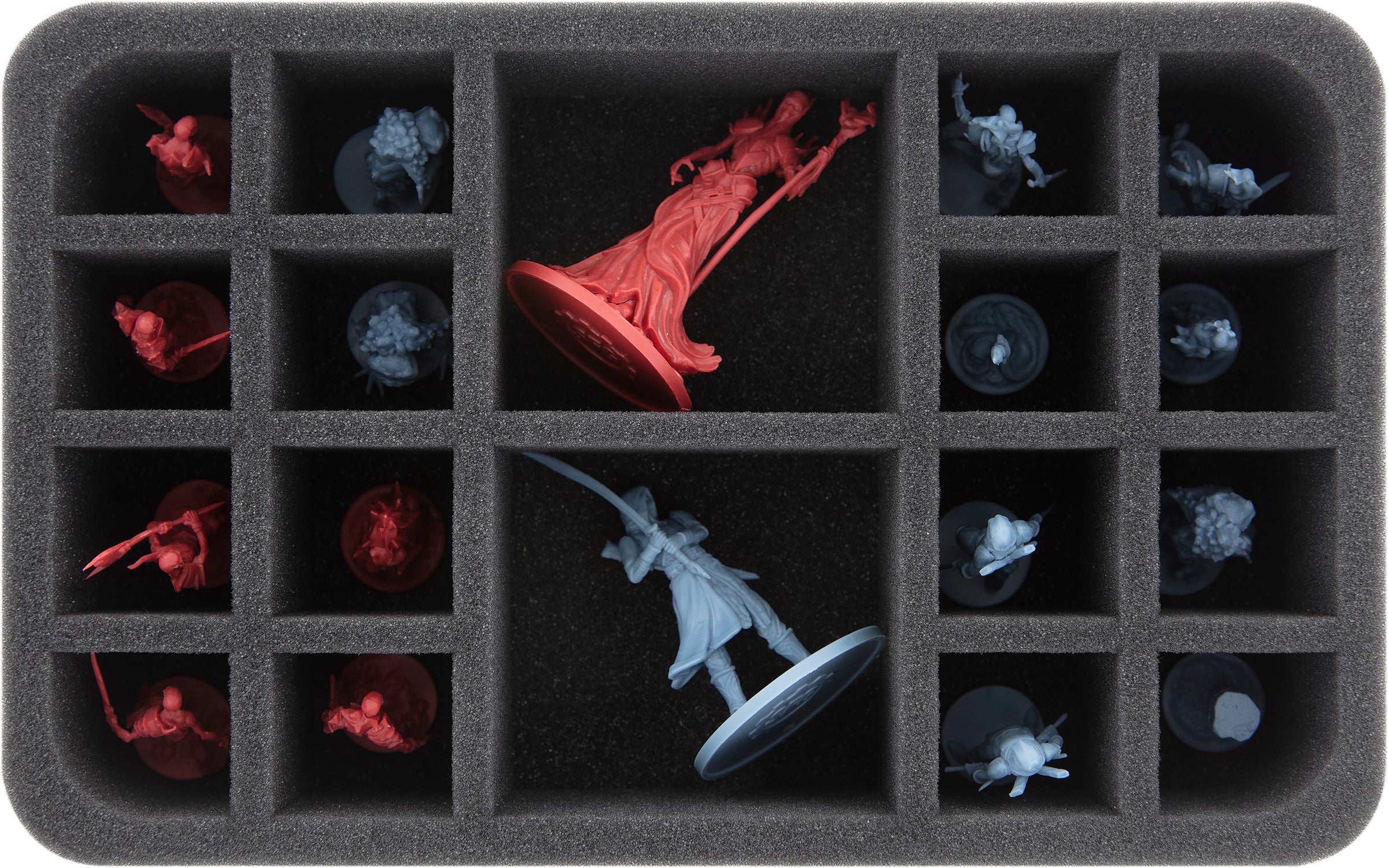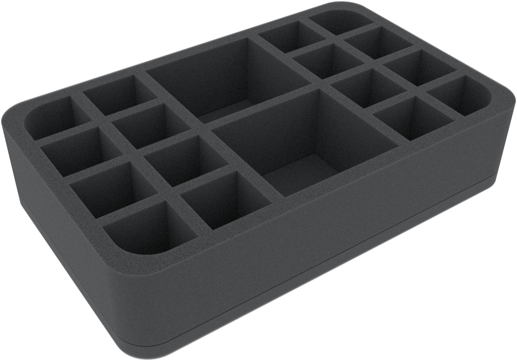 Up to 18 miniatures of your warbands find a safe place in this Half-Size foam tray. The compartments of different sizes are ideal for keeping both Champions and their Followers clear and well protected.