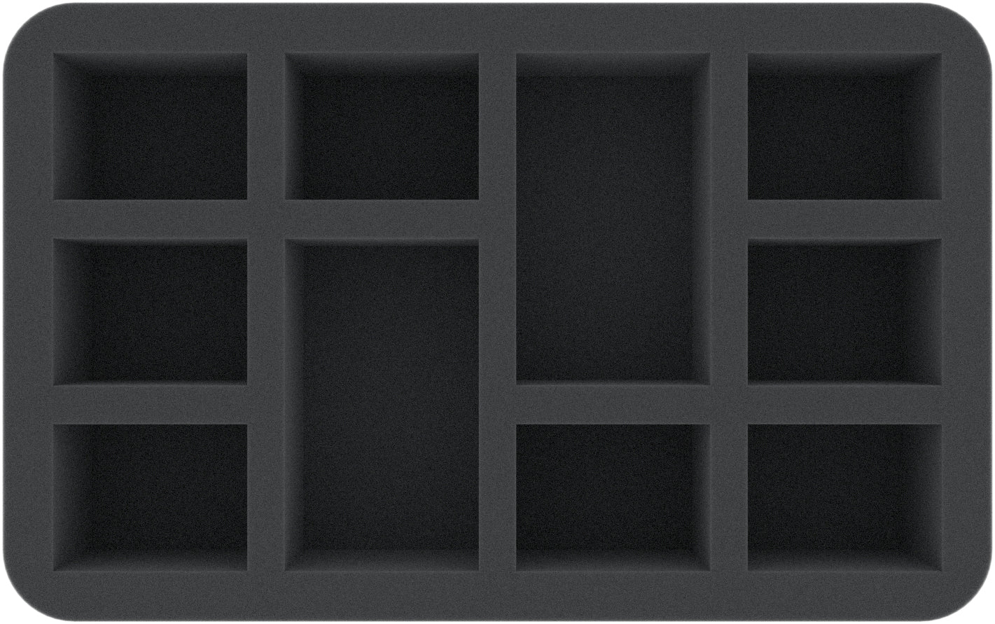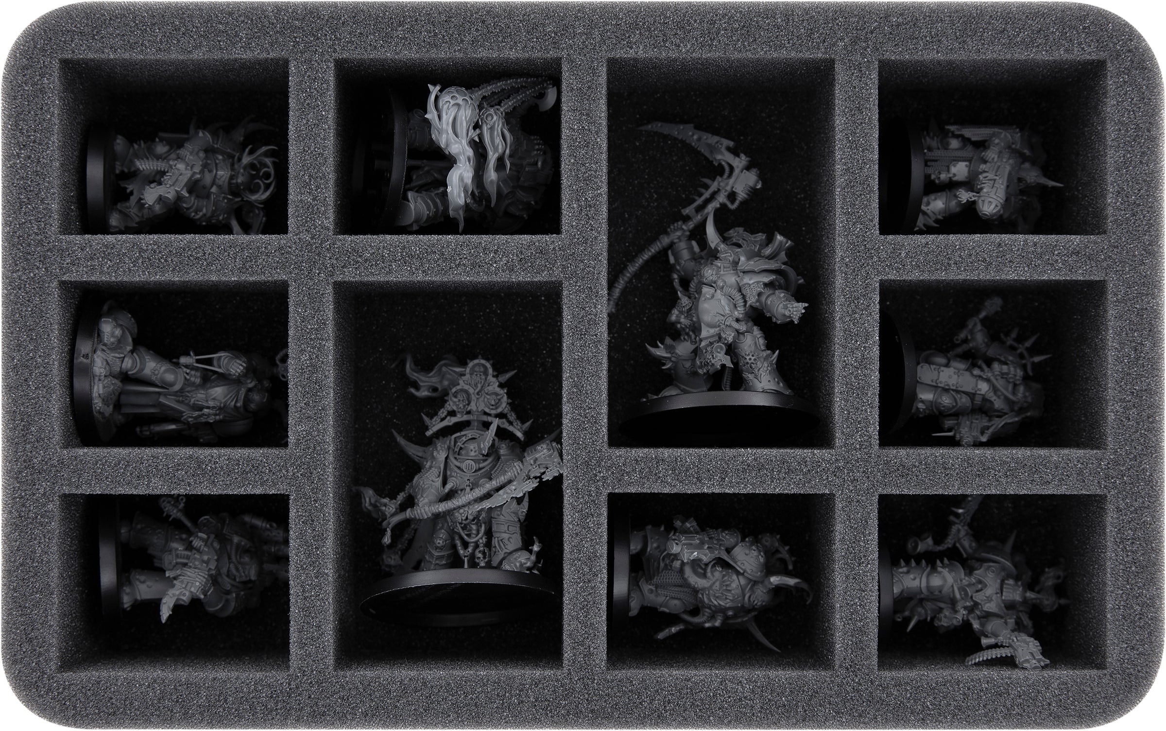 This foam tray is divided into 10 compartments to safely store and transport your units. You can use the insert for Plague Marines, Blightlord Terminators, Typhus or similar sized miniatures.