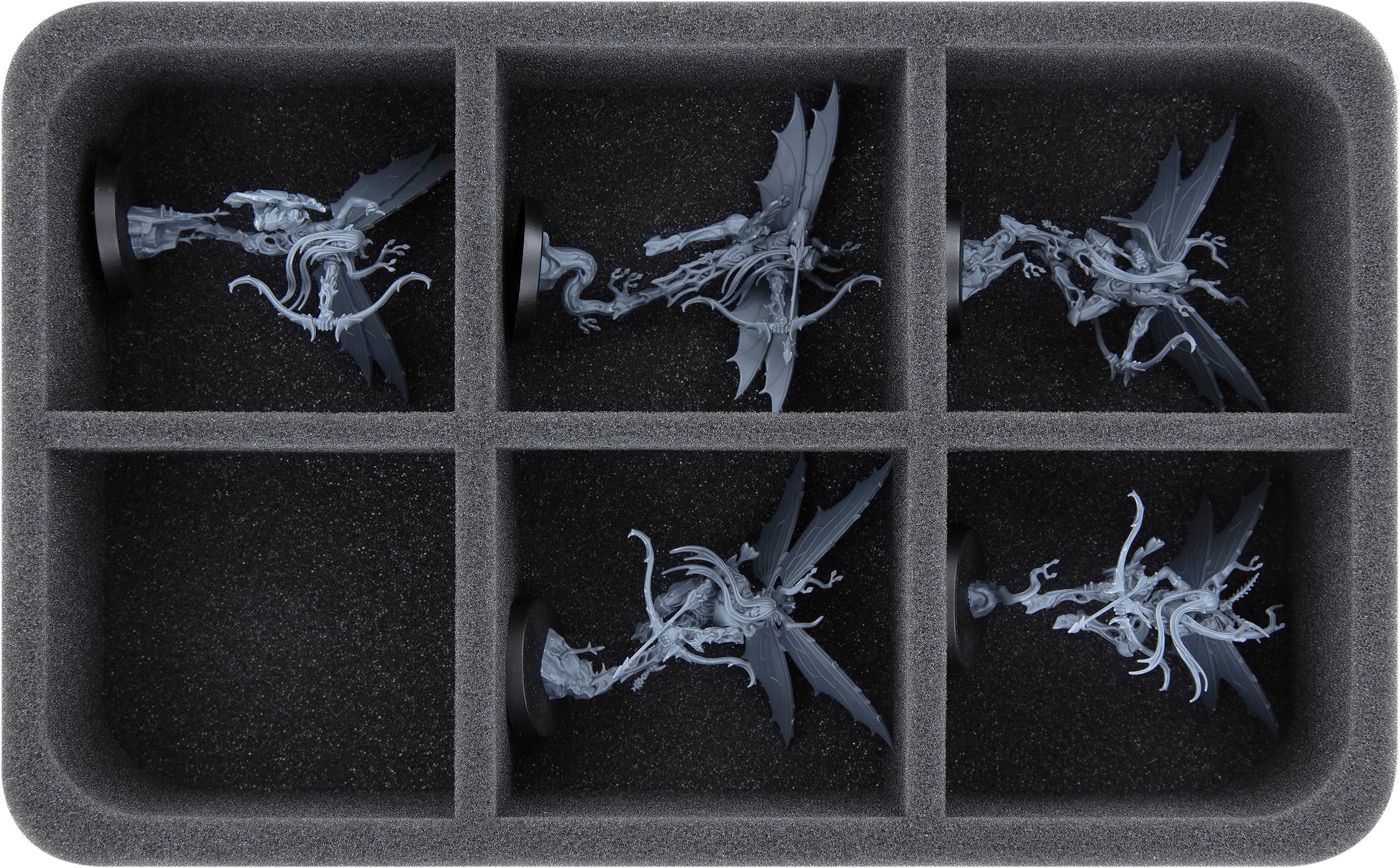 On this Feldherr foam tray you have space for up to 6 models of your army. The insert is especially suitable for storing the Khinerai Heartrenders or Khinerai Lifetakers and similar sized models.