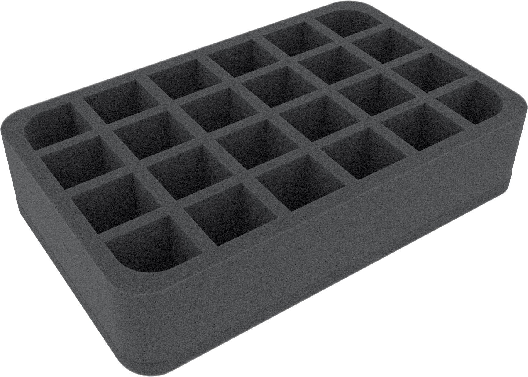 Perfect for 24 Blood Bowl Miniatures - 2016 Edition. This foam tray has 24 slots - each slot 50 mm deep. Ready to use - glued 10 mm foam base.