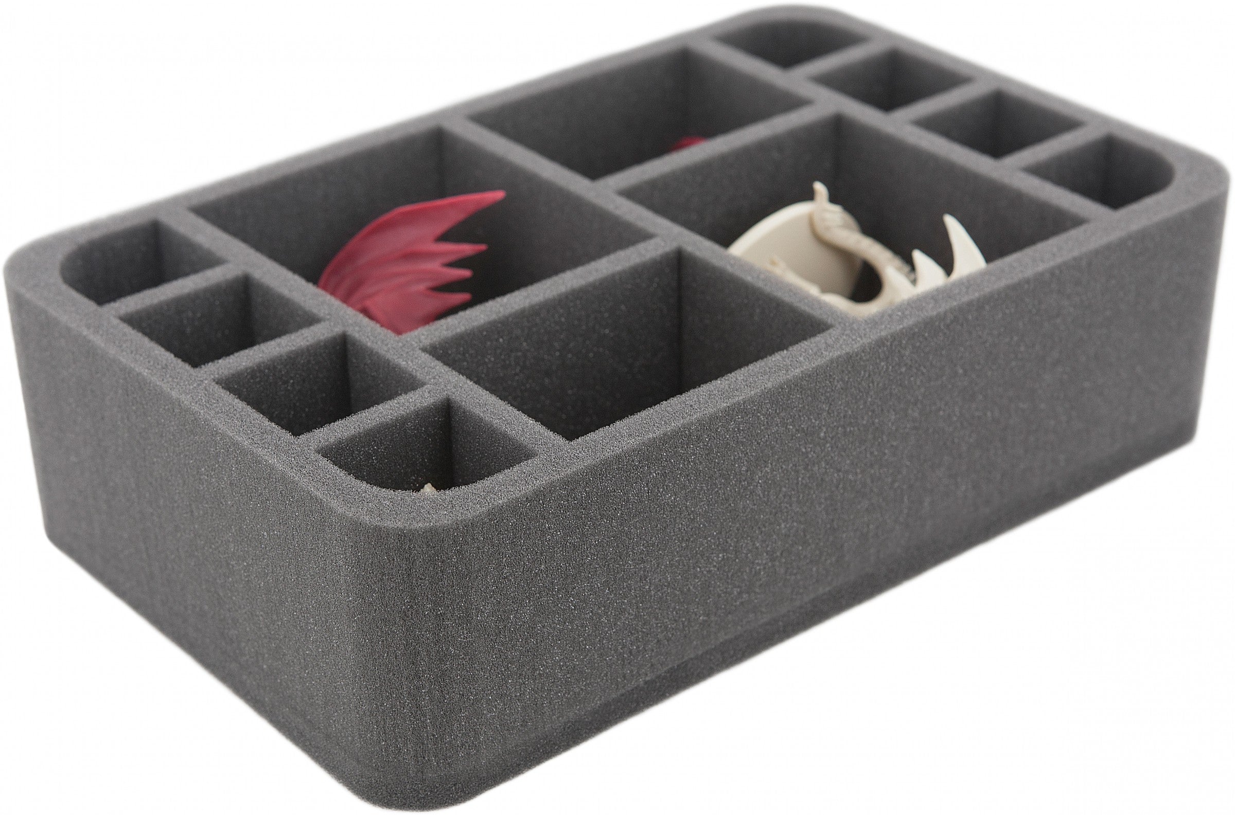 Nie tylko szczególnie twardzi przeciwnicy, szczegółowe miniatury Smoków Cieni i Merriods również należą do szczególnie dużych postaci z gry Descent. Zaprojektowaliśmy dla Państwa odpowiednią tacę piankową, aby skrzydła, pazury i macki pozostały nienaruszone.