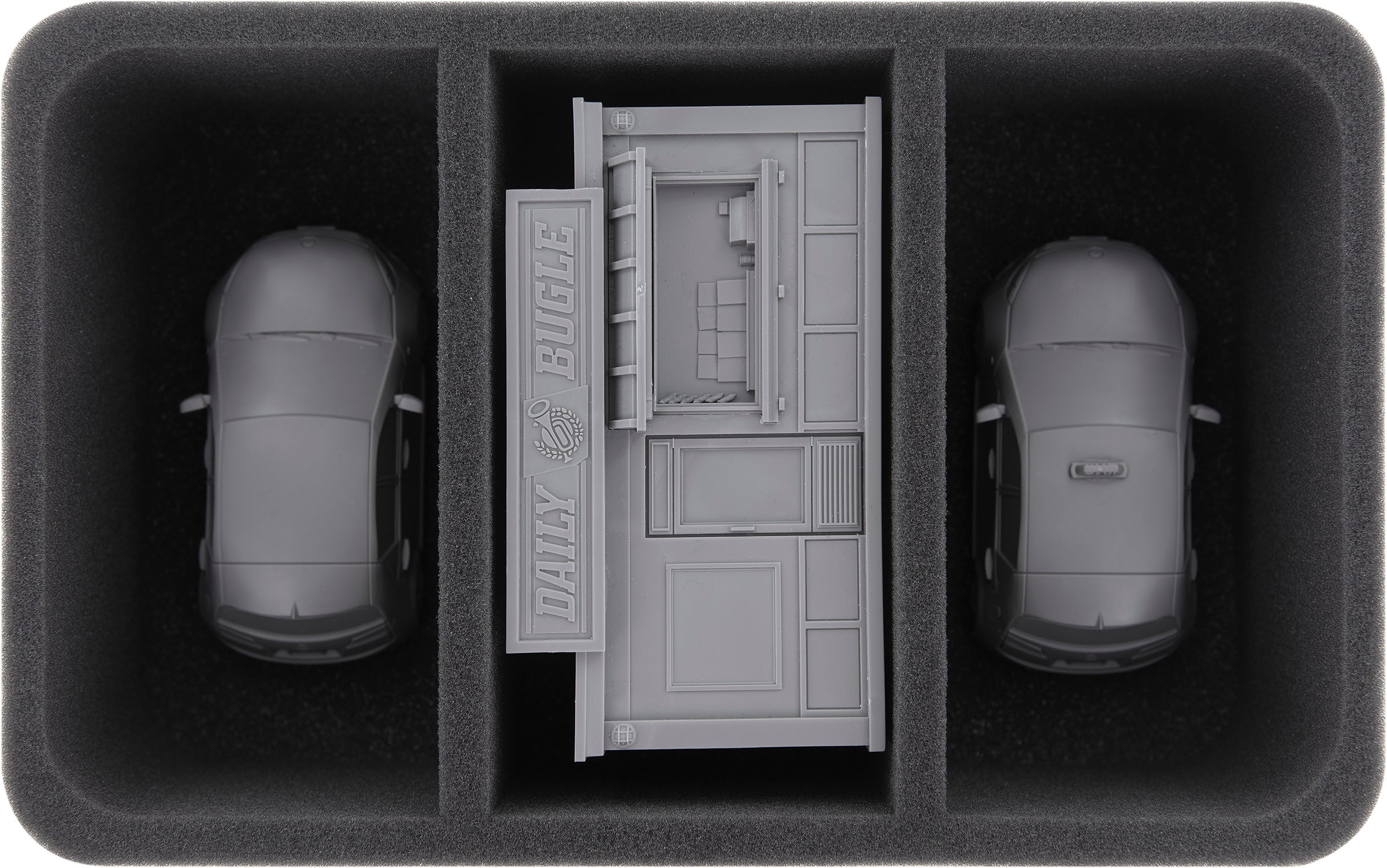 This Half-Size foam tray with its 3 large compartments is perfectly suitable for safely storing and transporting terrain items for Marvel: Crisis Protocol.