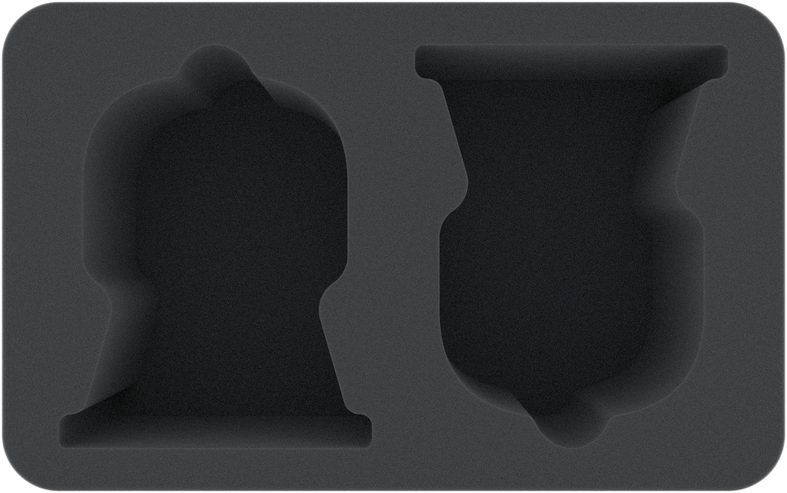 • The Half-Size foam tray has the dimensions: 275 mm x 172 mm x 105 mm total height (95 mm usable height + 10 mm foam base).