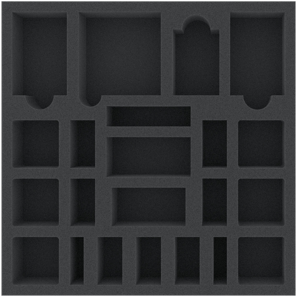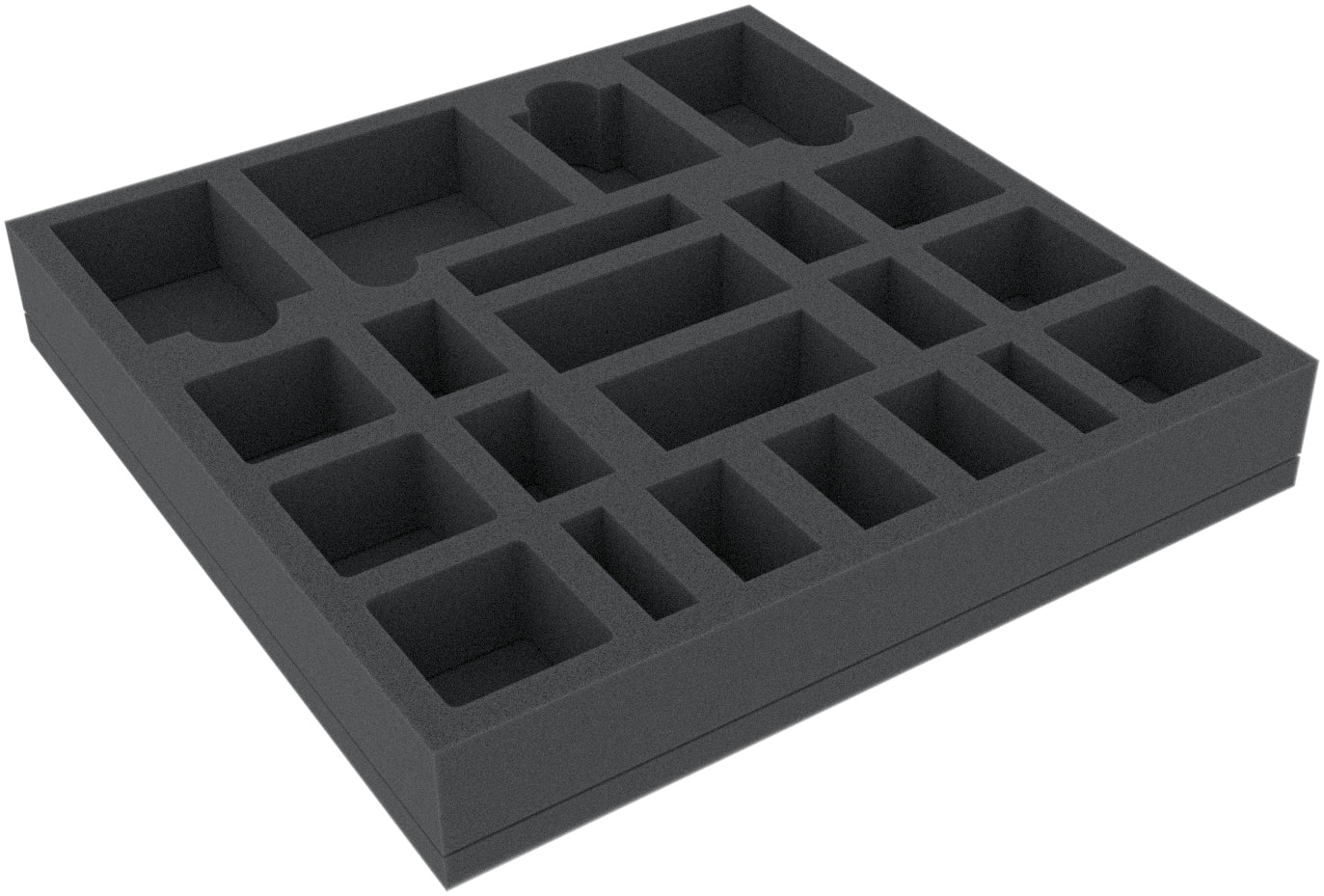 This 40 mm high foam tray is divided into 22 compartments. It is particularly suitable for the safe storage of tabletop and board game miniatures, as well as other fragile models and small parts.