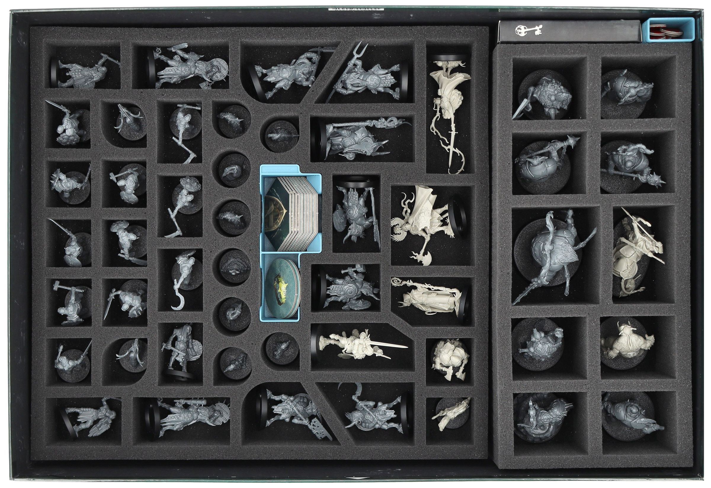 - Dwie specjalnie dopasowane piankowe wkładki niezawodnie chronią wszystkie miniatury przed uszkodzeniem - każda figurka ma swój własny, specjalnie wycięty przedział. Idealny do malowanych modeli i może być również bezpiecznie przechowywany po montażu.