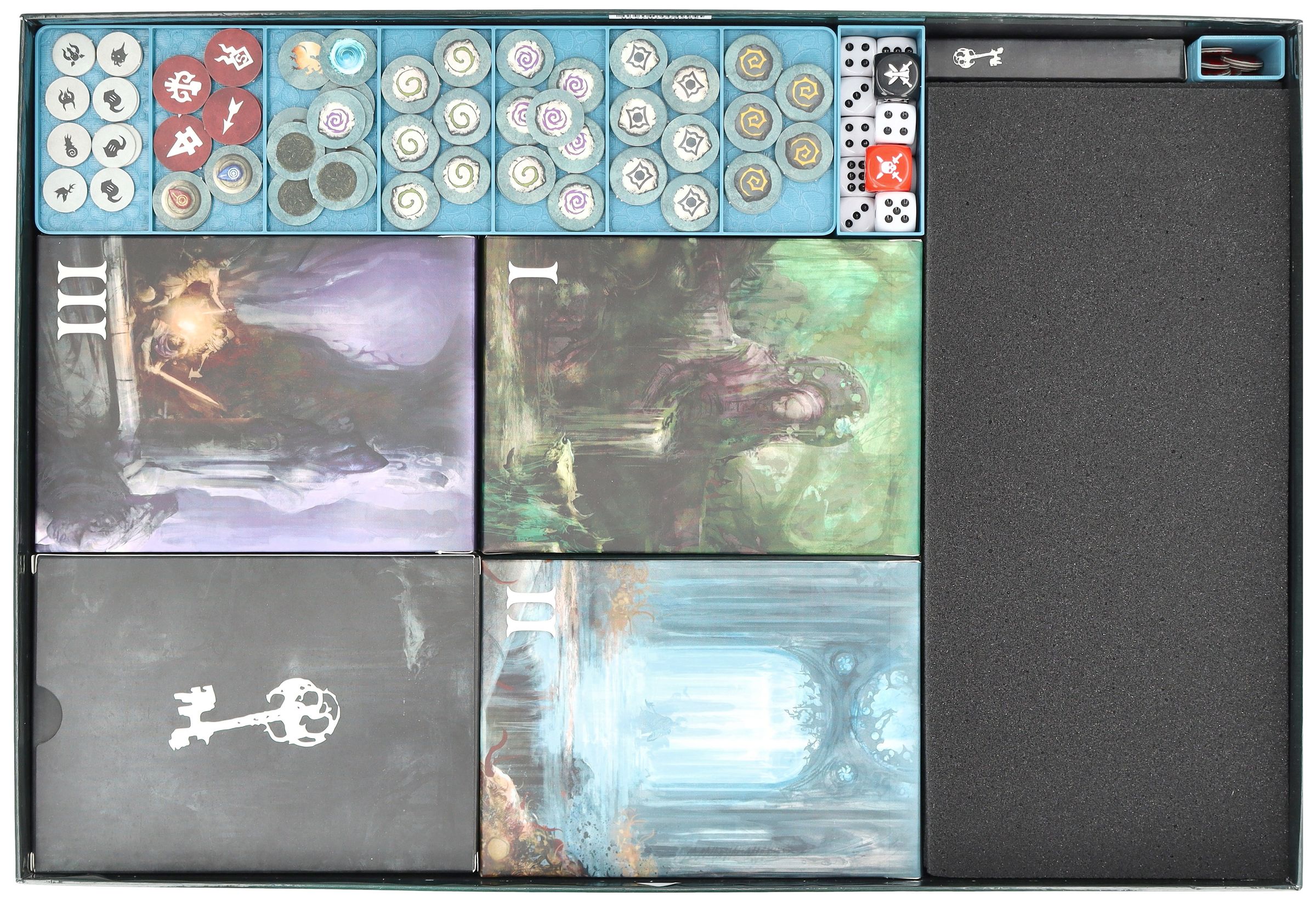 W mrocznych głębinach Darkwater czają się ohydne stworzenia, śmiertelne niebezpieczeństwa i epickie zadania. Abyś mógł w pełni skoncentrować się na przygodzie, nie musiał martwić się o dobre samopoczucie swoich bohaterów (lub złoczyńców, jeśli o to chodzi) i nie ugrzązł w materiale gry, ten zestaw piankowy Feldherr, w tym wkładki organizacyjne, zapewnia bezpieczną ochronę miniatur, przejrzystą organizację w pudełku i znacznie szybszą konfigurację gry.