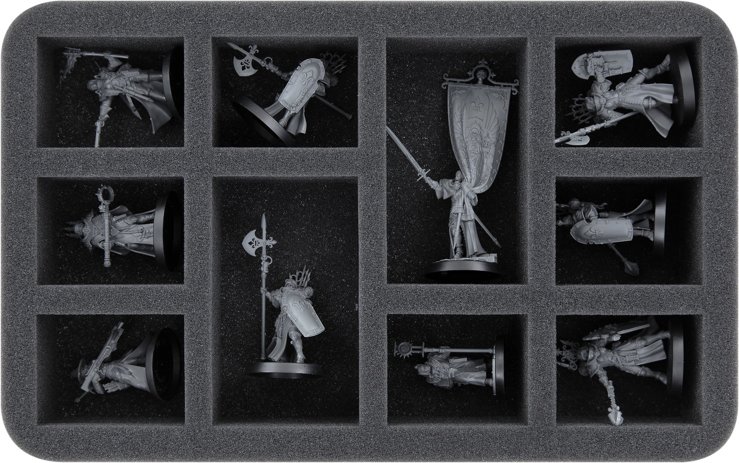 Indywidualnie dopasowane, wycięte przegródki niezawodnie chronią miniatury przed uszkodzeniem. Miękka pianka zapewnia, że pomalowane jednostki również bezpiecznie dotrą na stół do gry bez zadrapań.