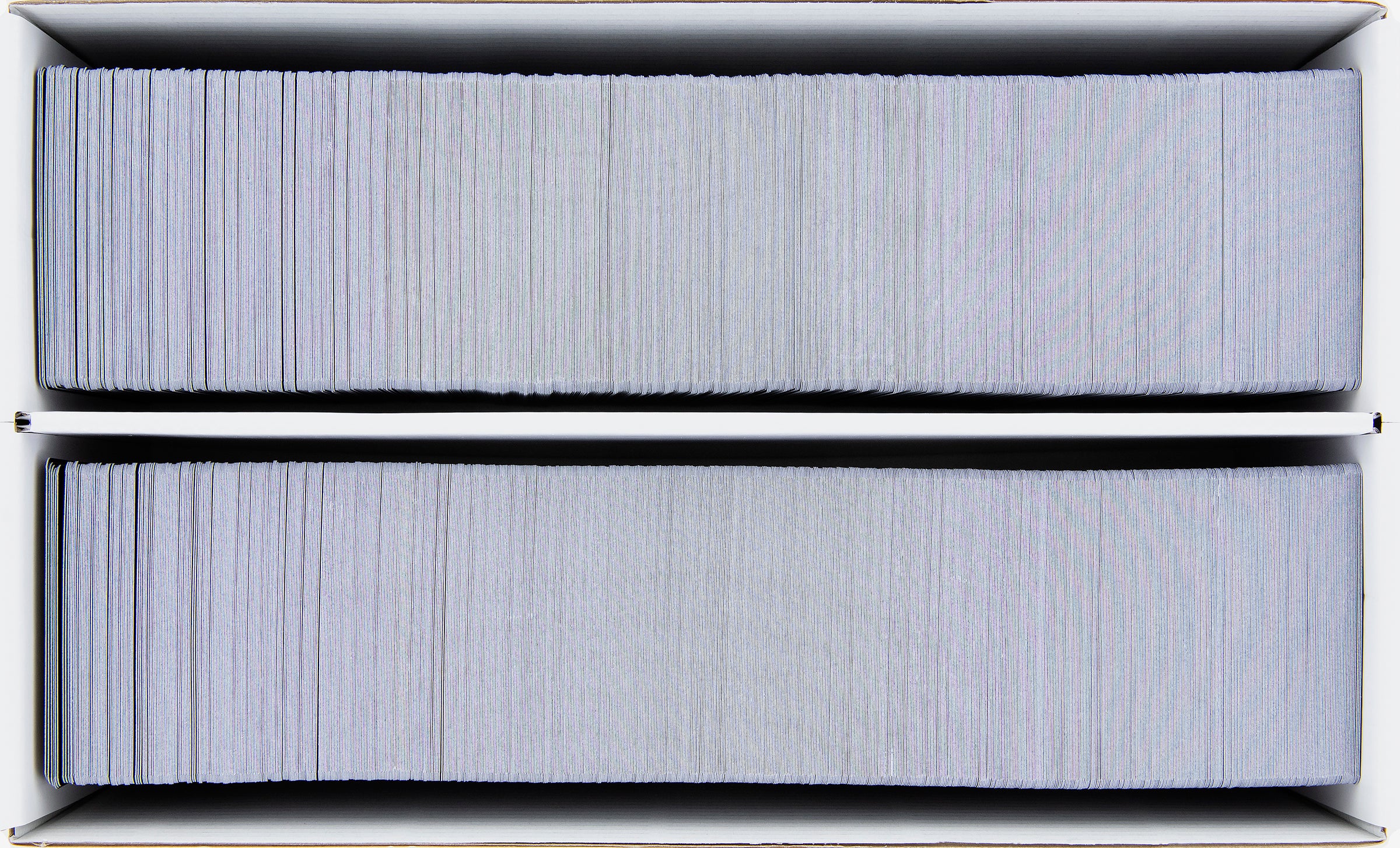 Przegroda w środku pudełka dzieli je na dwie równej wielkości przegródki. Dzięki temu karty mogą być ułożone w sposób uporządkowany i nie mieszają się podczas transportu.
