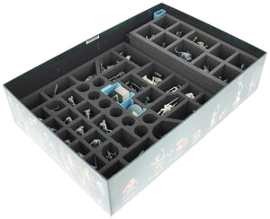 Łącznie 20 przegródek w 3 różnych rozmiarach na tej wkładce z pianki Half-Size chroni Twoje gangi. Małe i średnie miniatury znajdują tu bezpieczne miejsce i mogą być bezpiecznie transportowane na blat stołu.