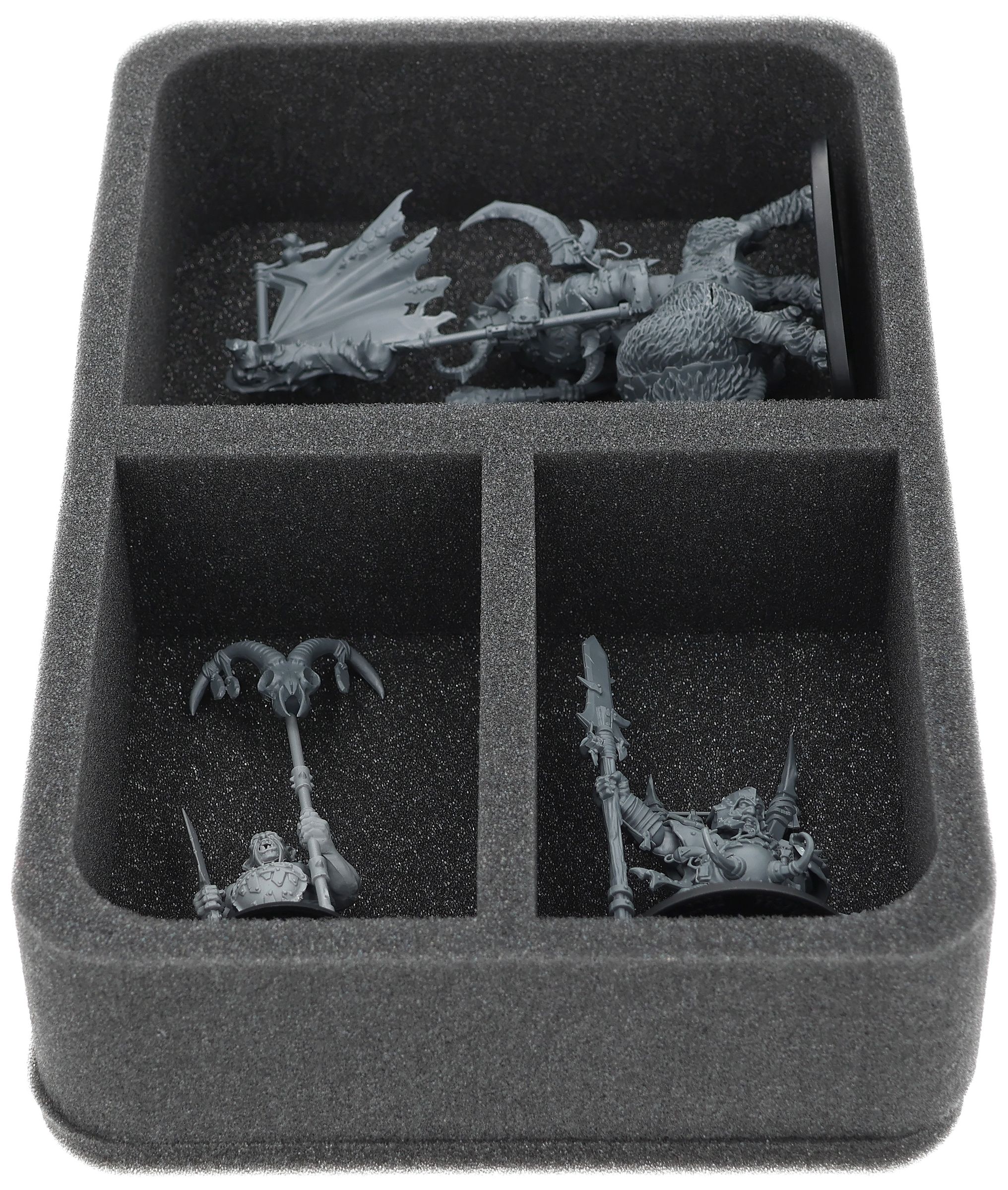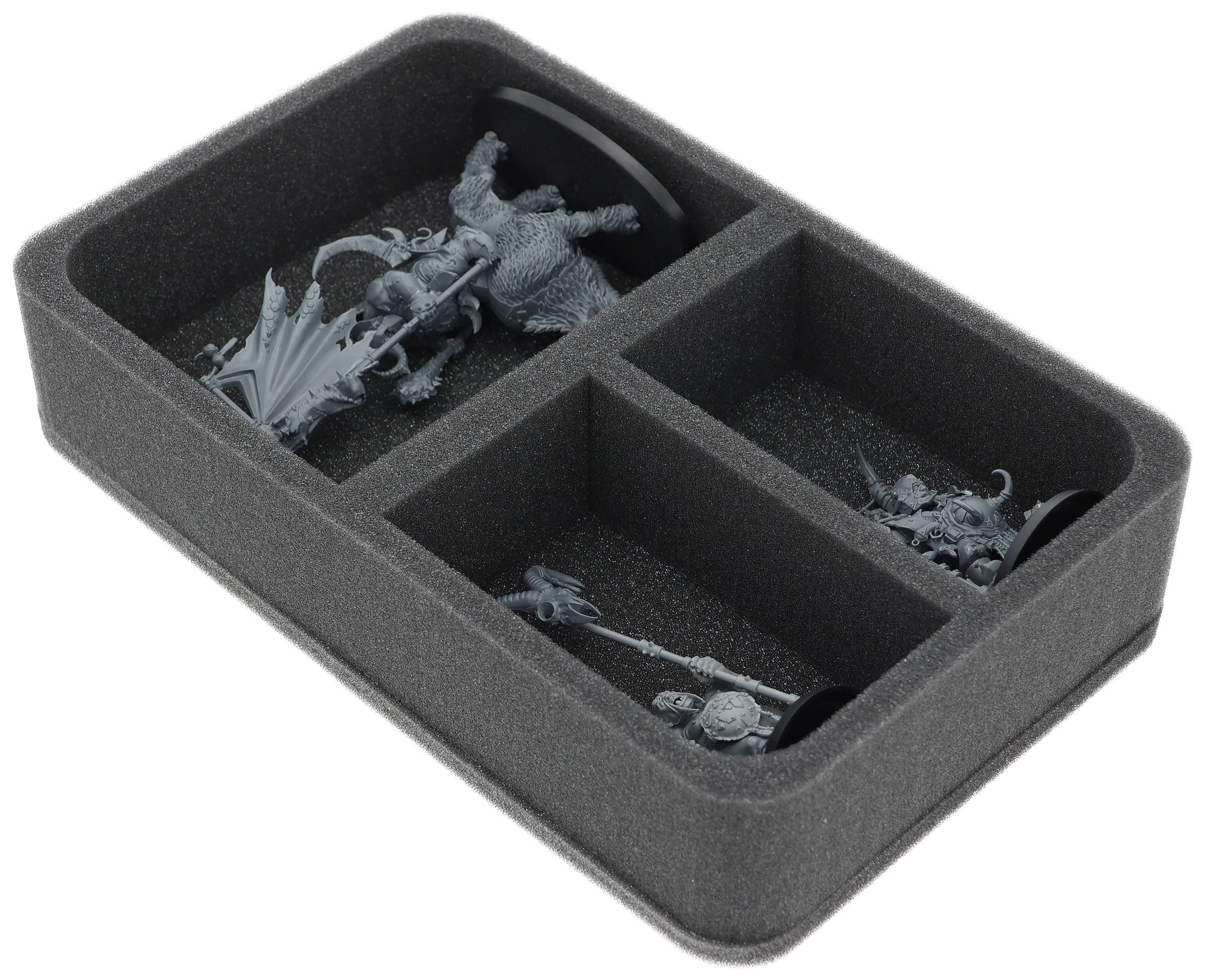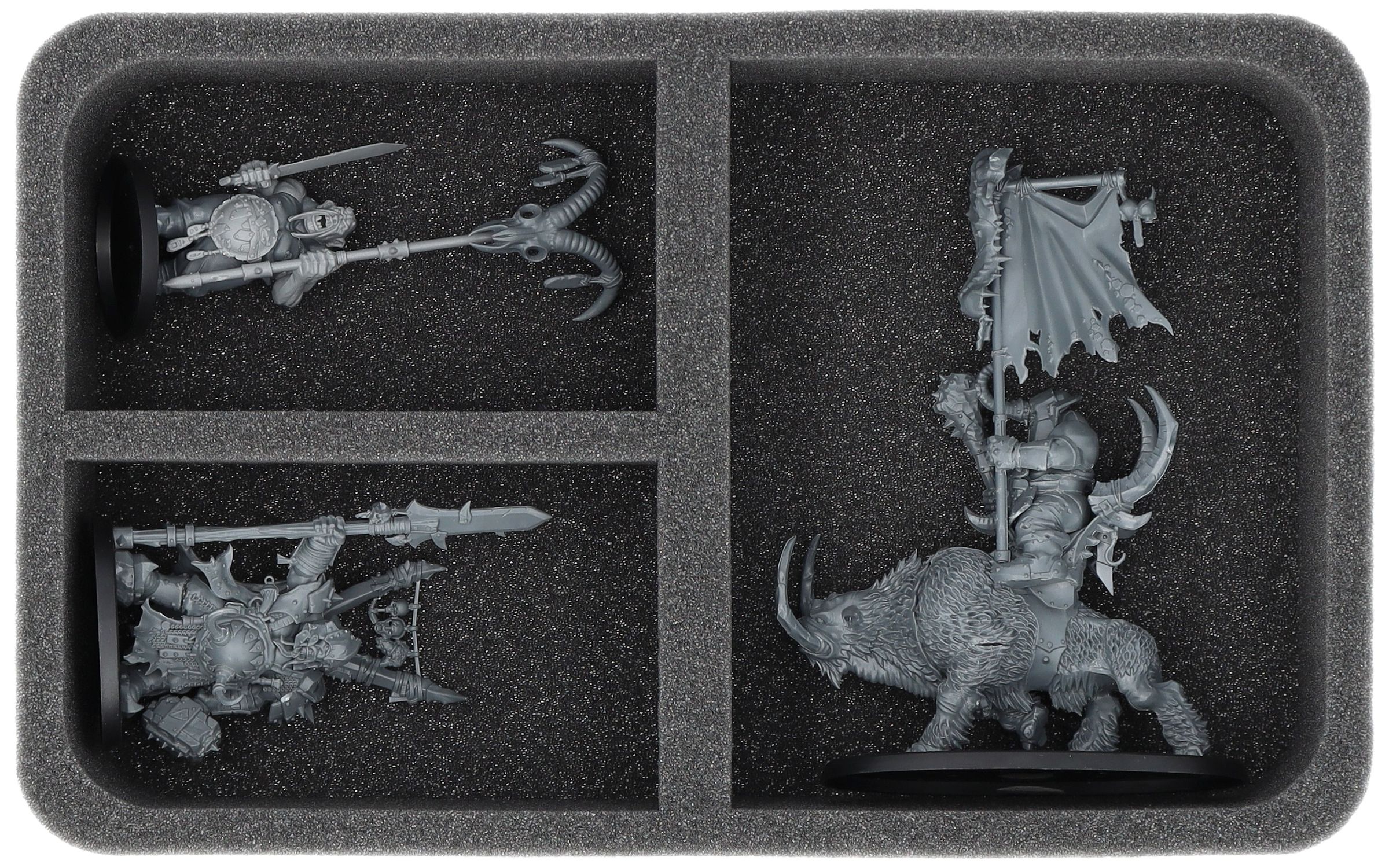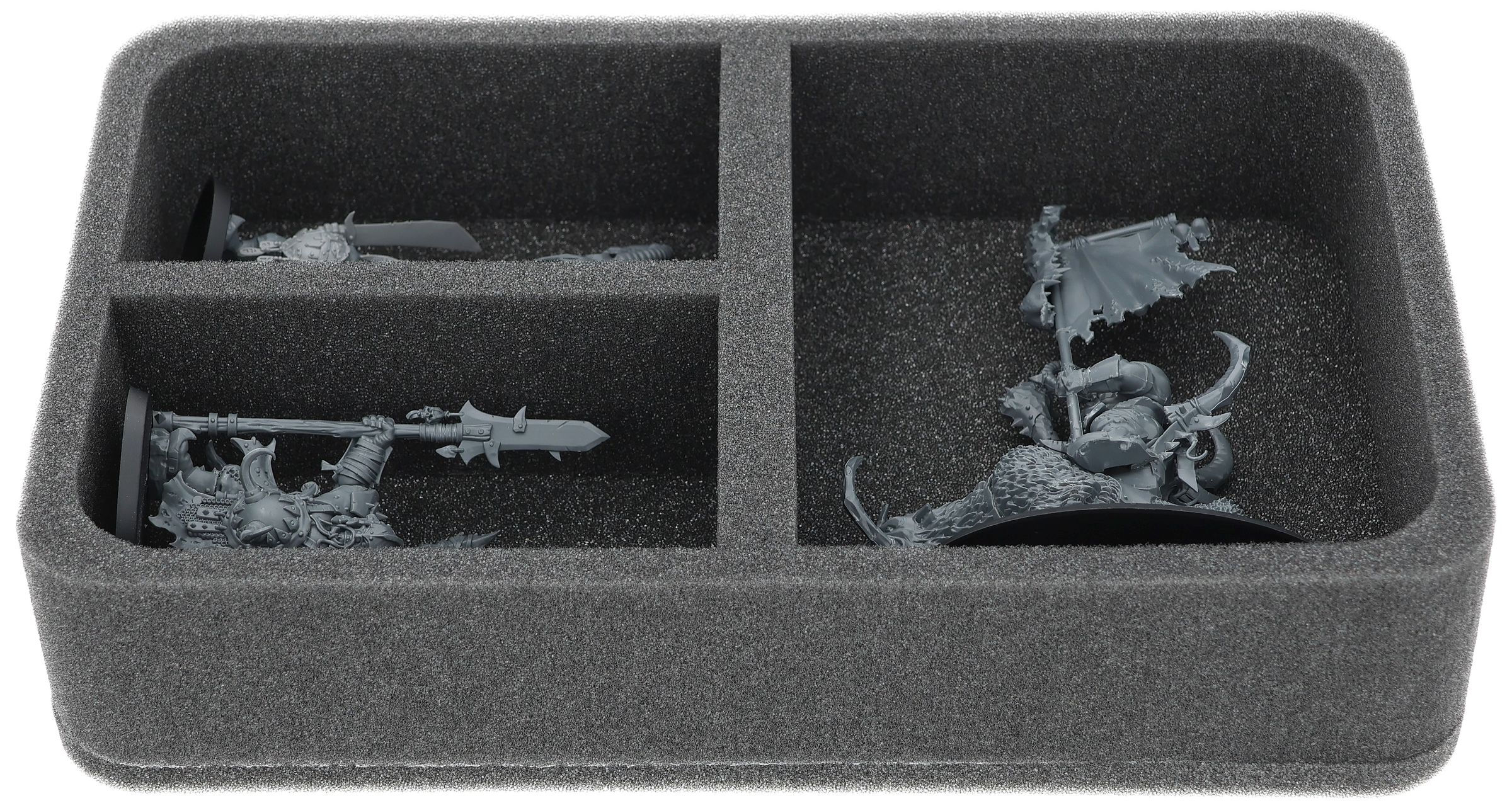 Na tej piankowej tacy Feldherr masz miejsce na maksymalnie 3 miniatury swojej armii. Wkładka nadaje się szczególnie do przechowywania Leadbelchers, Gluttons, Mournfang Riders i modeli o podobnych rozmiarach.