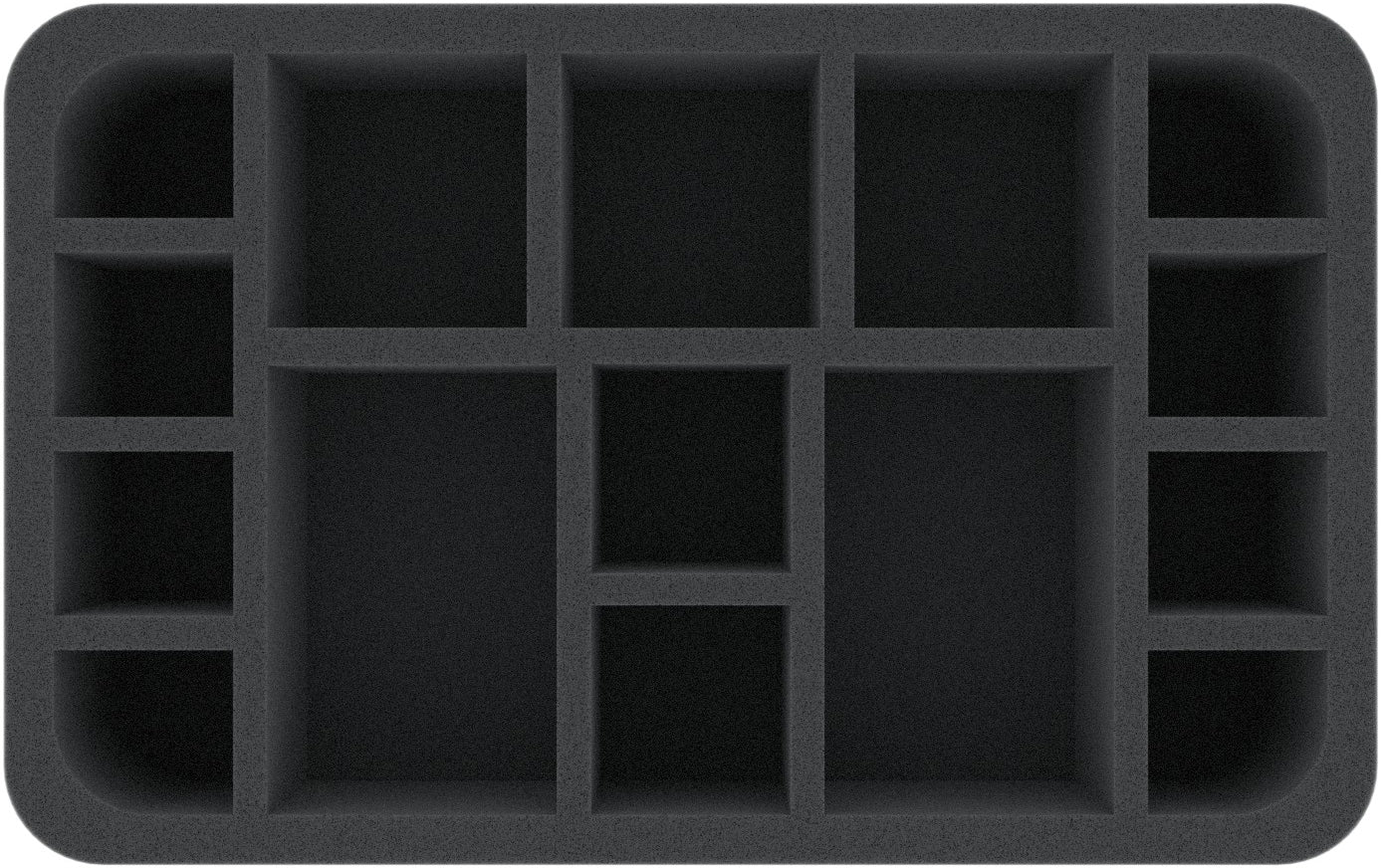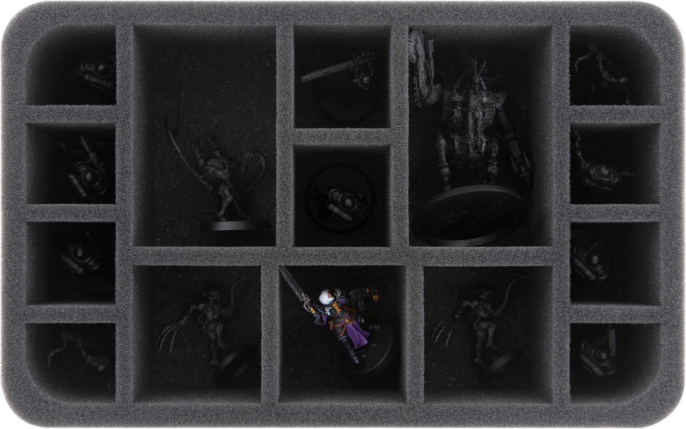 Dzięki 15 przegródkom o różnych rozmiarach, ta taca na piankę Half-Size jest idealna do przechowywania średnich rozmiarów miniatur i standardowych jednostek Adepta Sororitas, przezroczystych i dobrze zabezpieczonych.