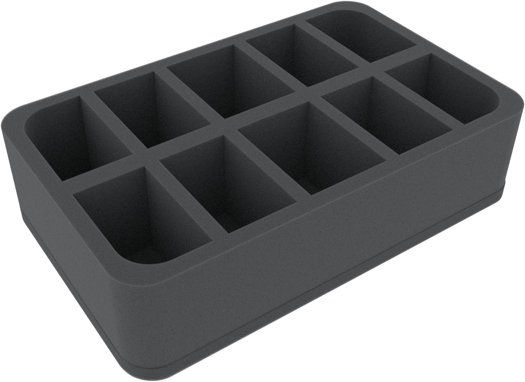 Na tej piankowej tacy Feldherr masz miejsce na maksymalnie 10 miniatur swojej armii. Wkładka nadaje się szczególnie do przechowywania Flyerów, Trebuchetów, Smoków i modeli o podobnych rozmiarach.
