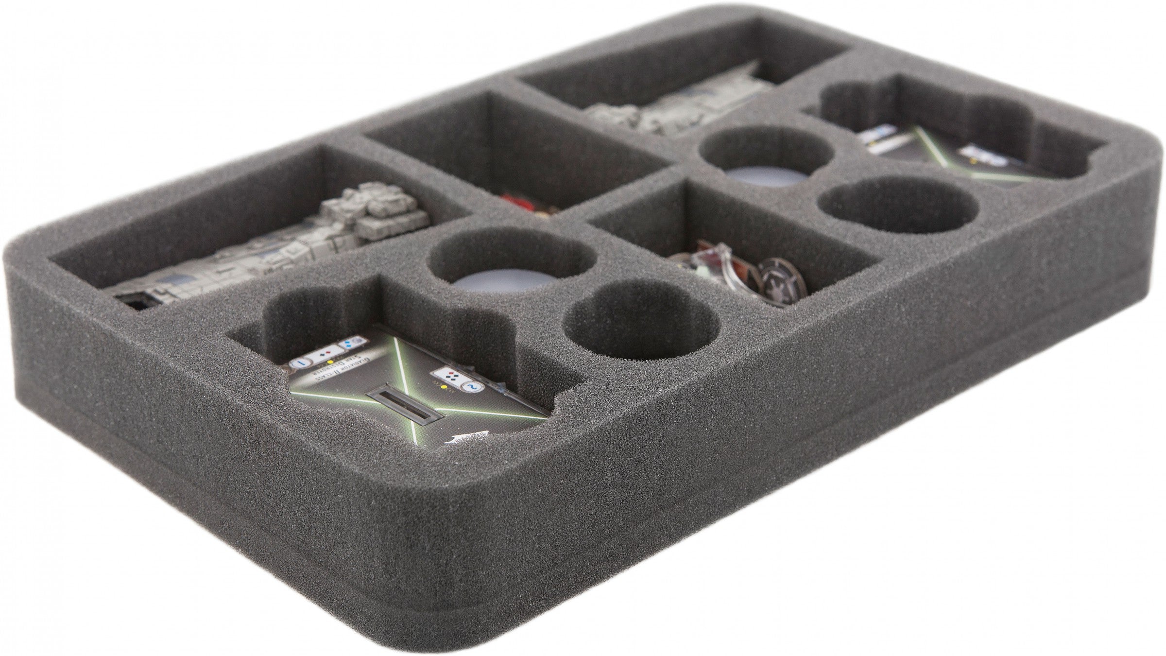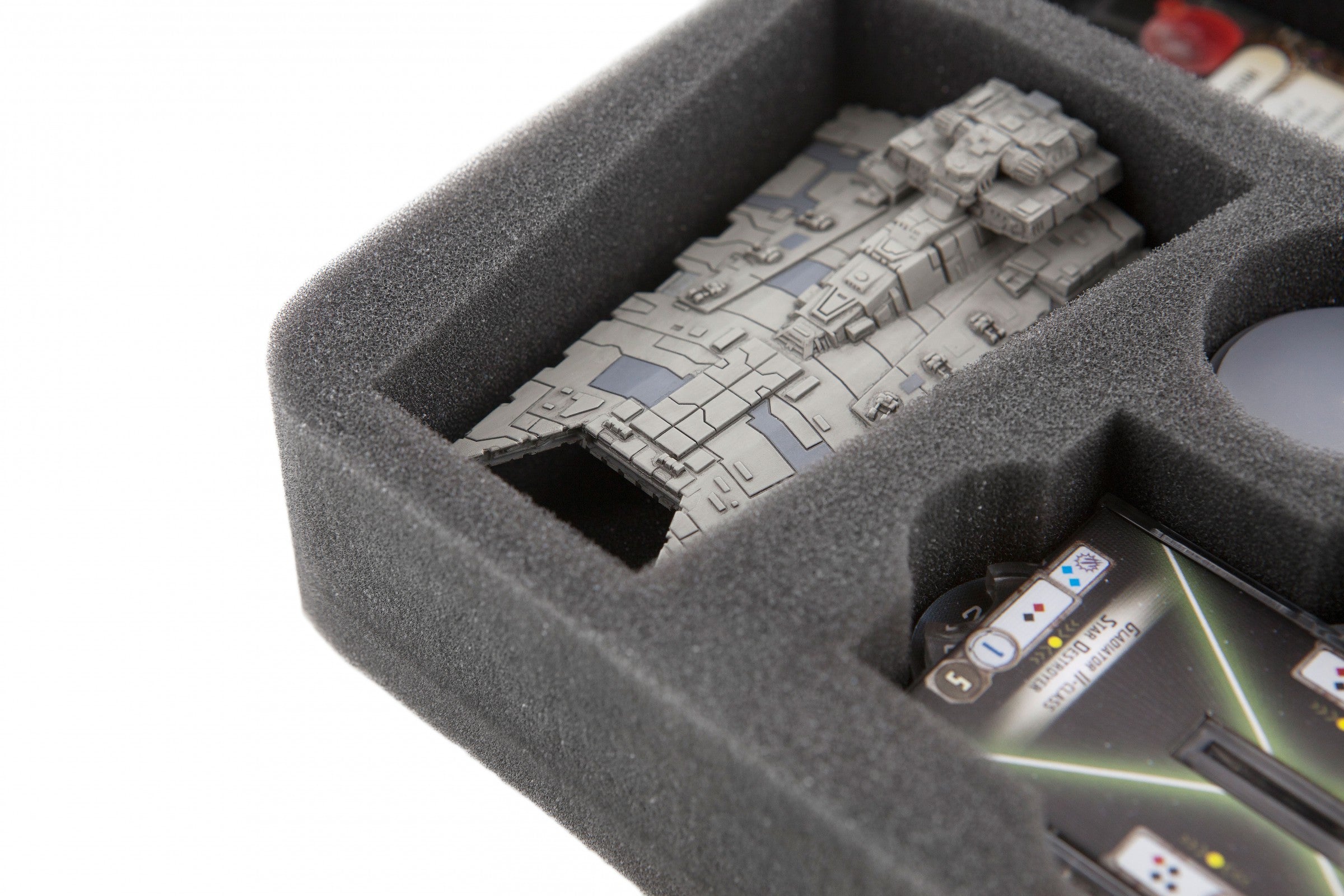 Specjalnie na tacę z pianki dostosowaną do potrzeb Gwiezdnych Wojen w Armadzie Gladiator-Class Star Destroyer. Jest wystarczająco dużo miejsca, aby pomieścić dwie Frigaty szturmowe Mark II, bazy oraz dodatkowe miejsce na token lub kości.