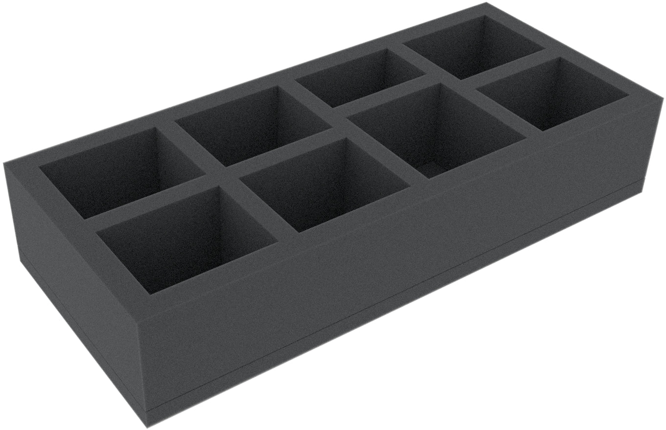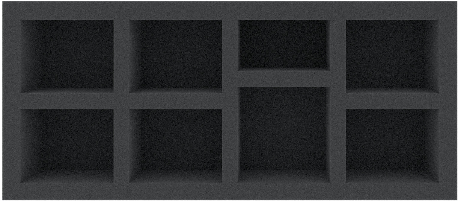 Ta taca z pianki o wysokości 60 mm jest podzielona na 8 przegródek i nadaje się szczególnie do bezpiecznego przechowywania miniatur gier stołowych i planszowych, a także innych delikatnych modeli i małych części.